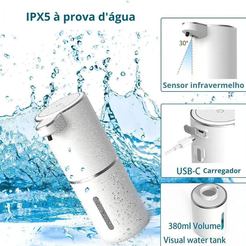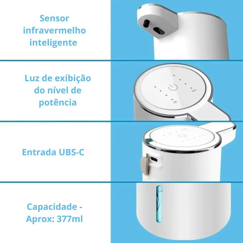 Basta aproximar as mãos e ele libera automaticamente uma espuma suave, na medida certa.