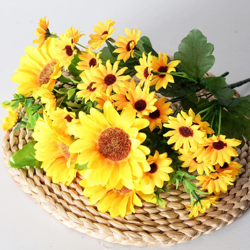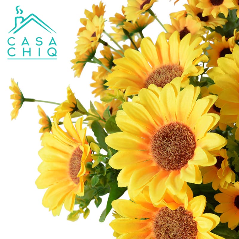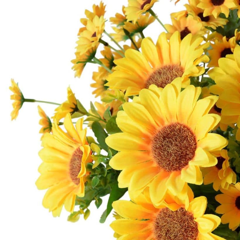 "Mas e se as flores perderem a cor?" Com nosso buquê de girassóis artificiais, a beleza permanece viva temporada após temporada.