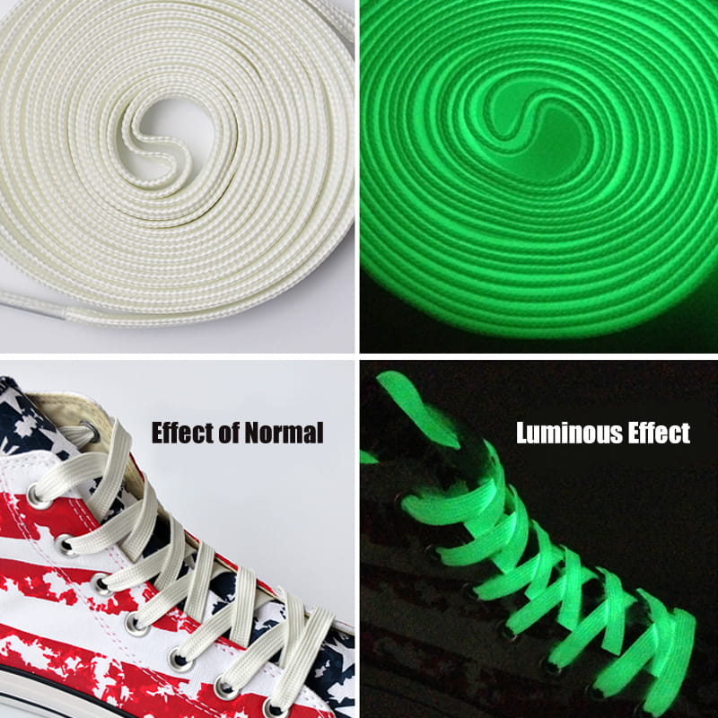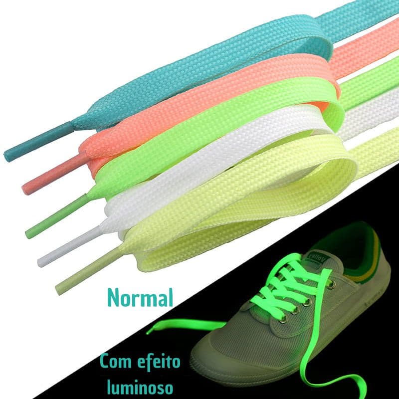 Brilho no Escuro: Os cadarços são feitos com materiais que brilham no escuro, proporcionando um efeito luminoso incrível durante a noite ou em ambientes com pouca luz.