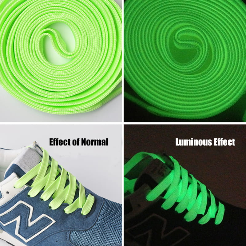 Visibilidade Refletiva: Além de brilhar no escuro, os cadarços também possuem detalhes refletivos, aumentando a visibilidade e a segurança ao caminhar ou praticar esportes durante a noite.